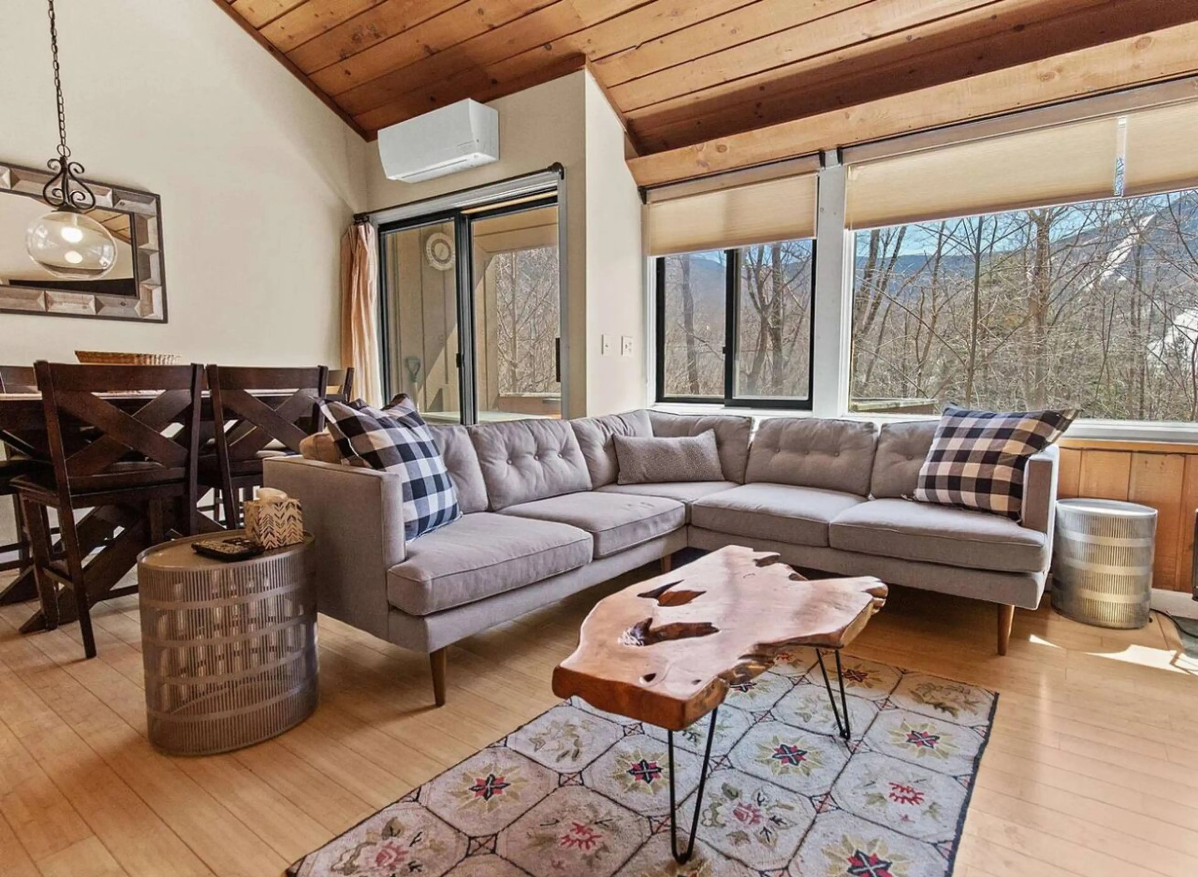 This spacious mountainside condo is tucked away in the Village Of Loon, directly across the street from the slopes with views from your window! Enjoy access to on-site pools, hot tubs, tennis courts and fitness center. Just minutes to the area's top attractions, swimming holes, hikes and adventures!...